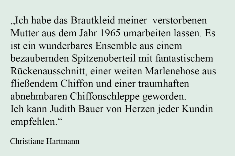 Bereits während meiner Schulzeit nähte ich in einer Schüler-AG erste Kostüme für unsere Theatergruppe. Nach meinem Abitur beschloss ich deshalb dieses Hobby zu meinem Beruf zu machen und absolvierte meine Ausbildung zur Damenschneiderin in Wiesbaden. Anschließend zog es mich privat nach Hamburg, was sich auch beruflich für mich auszahlen sollte. Ich arbeitete für einen kleinen Designer als einzige Schneiderin und entschloss mich schließlich meinen Meister zu machen. Mit dem Abschluss als eine der acht besten Meister über alle Gewerke in Hamburg arbeitete ich anschließend noch drei Jahre als angestellte Meisterin im Maßschneiderhandwerk. Hauptsächlich verantwortlich für die Schnitte, sowie die Ausbildung der Lehrlinge hatte ich schließlich alle Voraussetzungen für mich erfüllt um meinen Beruf zu meiner Berufung zu machen und mich im Jahre 2011 in Wiesbaden selbstständig zu machen. Und so fertige ich nun seit mehr als 14 Jahren liebevoll Einzelstücke für meine zahlreichen Kunden an und erlebe jeden Tag wie befriedigend es ist, dass was man tut mit Leidenschaft und Hingabe zu machen.